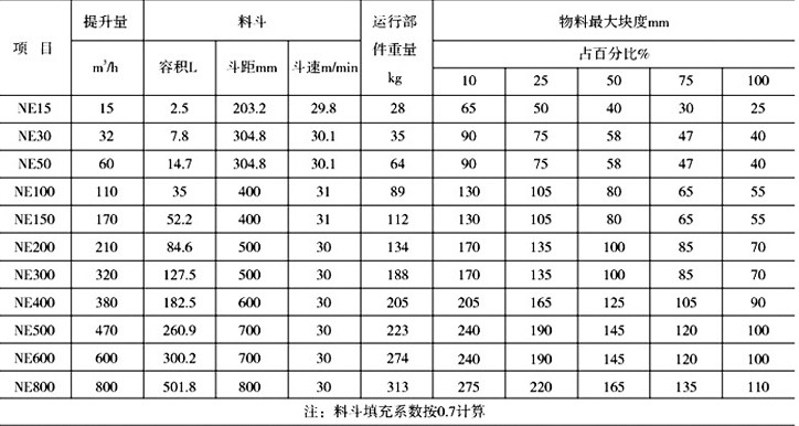 三、NE系列斗式提升機(jī)性能參數(shù):